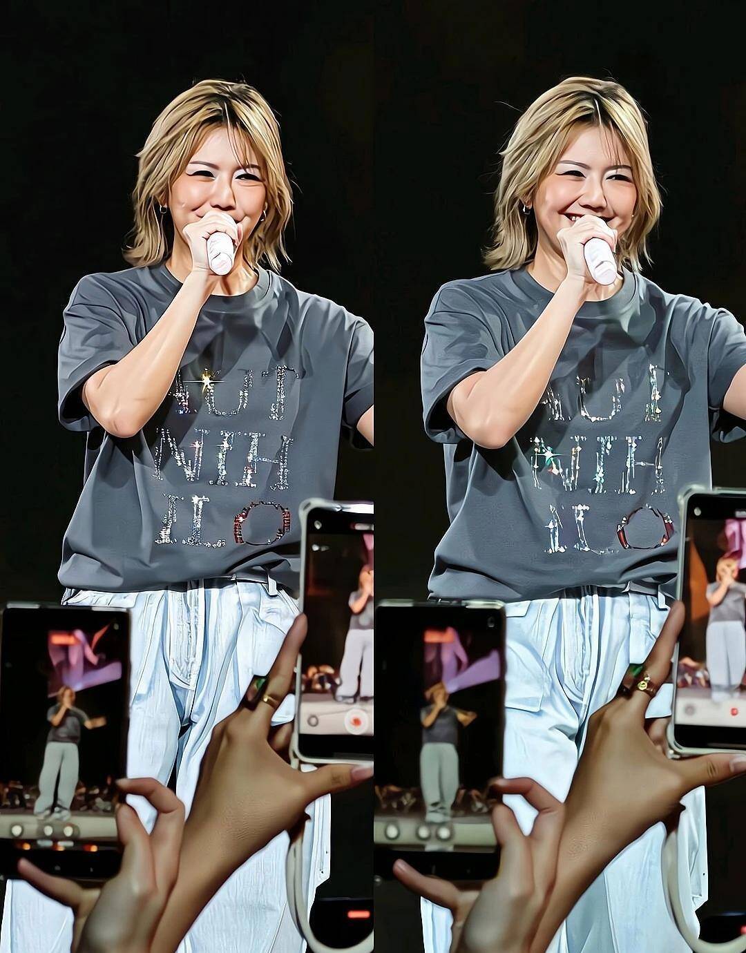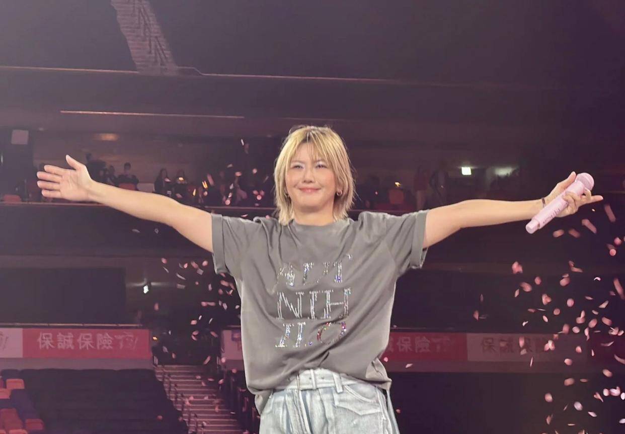 整场演唱会唯一能看的,是一套类似私服的造型:灰色T恤配修身牛仔裤,简单清爽又显瘦,完美贴合孙燕姿的气质。